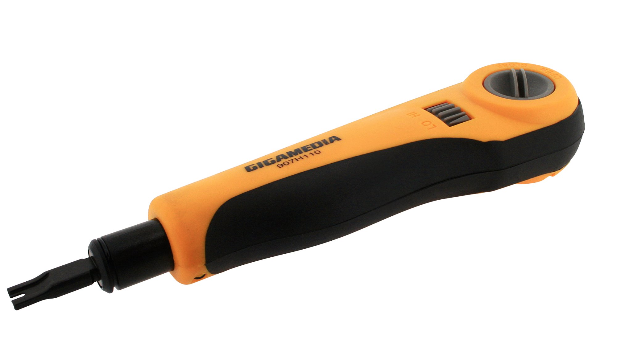 Insets and cuts the wire in a single operation. Adjustable impact force. Facilitates insertion of conductors into 110 or LSA+ blocks.