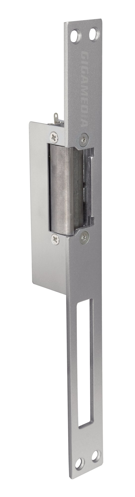 The GGM AXEE01L is a recessed electric strike with current emission operating in "fail-safe" mode (normally open). It is a reversible, symmetrical product and works on 12 V DC. It is delivered with a long faceplate suitable for most projects.