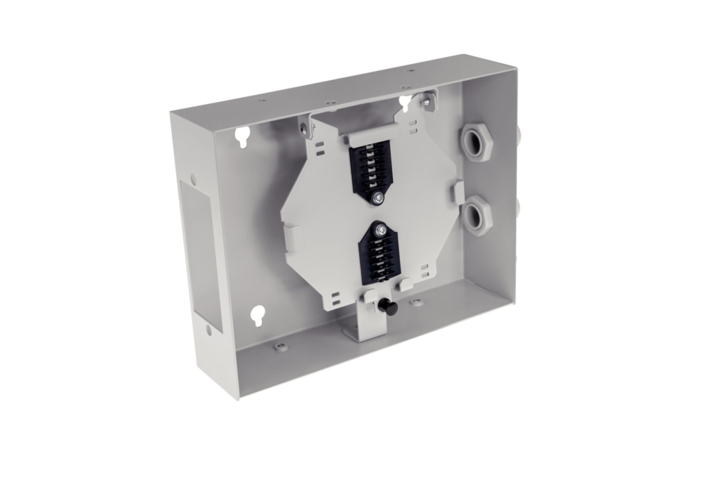The BOXOPTIC wall panel is an ideal, economic solution for installations up to 12 fibre optics (LC duplex). It offers the possibility of integrating the most used connectors on the fibre optic network depending on the module selected. This panel is intended for indoor use and is fixed directly to a wall or panel.