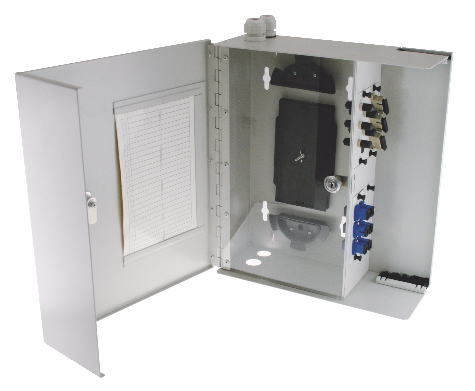 | Unloaded Fiber Optic Wall-mount box | 6 to 36 FO (up to 64 FO with LC quad adapters |