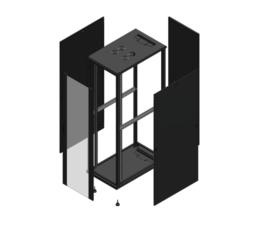 | Roof | With ventilation holes and rear cable entry system (800 mm width cabinets are also equipped with the sides pre-cut for cable entry) |