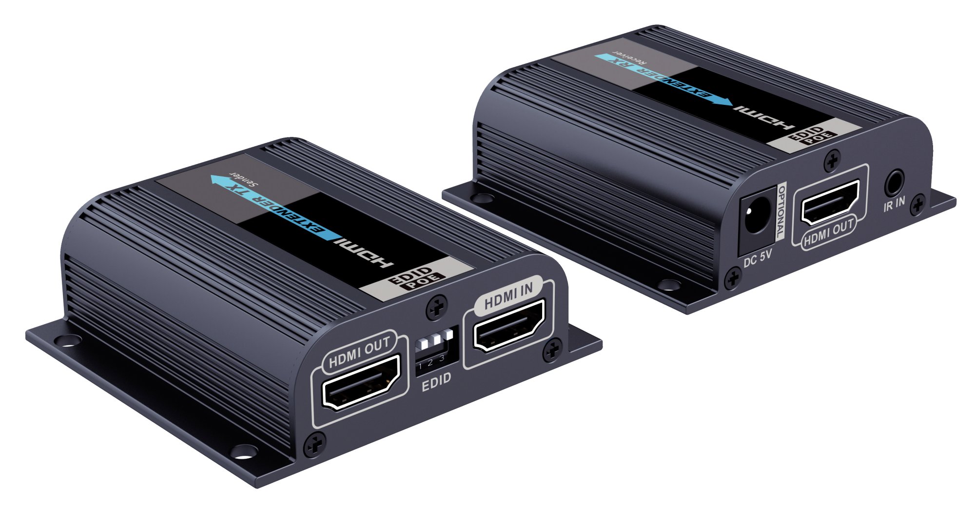 The GGM HDEXT2K50M is a kit comprising an emitter which converts a signal coming from an HDMI source into a network RJ45 cable, as well as a receiver which converts the signal from the network cable into HDMI in order for it to go towards a display, monitor or screen. The receiver is powered via the PoE network cable and has therefore no need of a bulky power supply. These are Plug and Play products requiring no installation configuration. Furthermore, in the rare case where pairing is difficult, the EDID configuration simplifies the procedure. The emitter has a “loop out”…