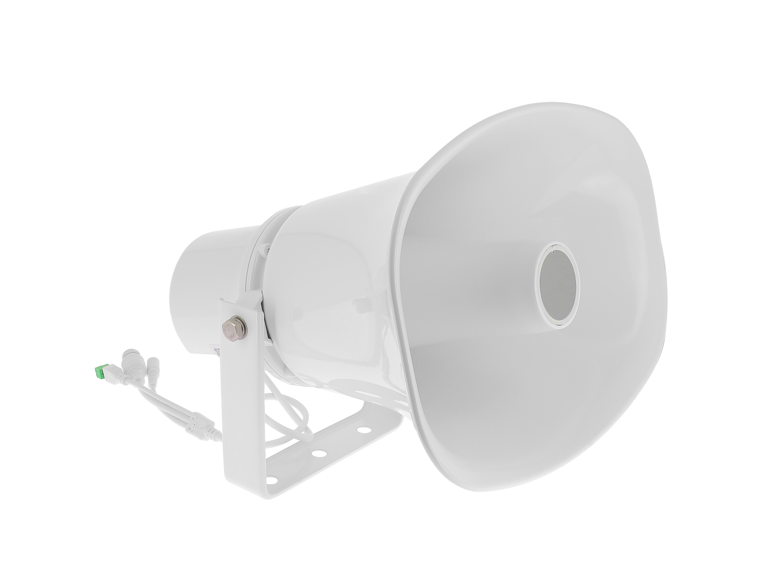 The IP horn speaker HPHORN30MIP is dedicated to secure site. This horn speaker supports 30W power and can be connected over the netwrok. It is Onvif and SIP compliant and can be easily integrated on a VMS This speaker can be powered using PoE+ ( 802.3 at) injector or switch or using 12/24VDC power supply. Thanks to the IP67 rate, it can be installed in indoor or outdoor environnement. This device will help you to warn in case of intrusion or threat, control operations remotely by giving instruction to operators on site and also help people in case of problem.