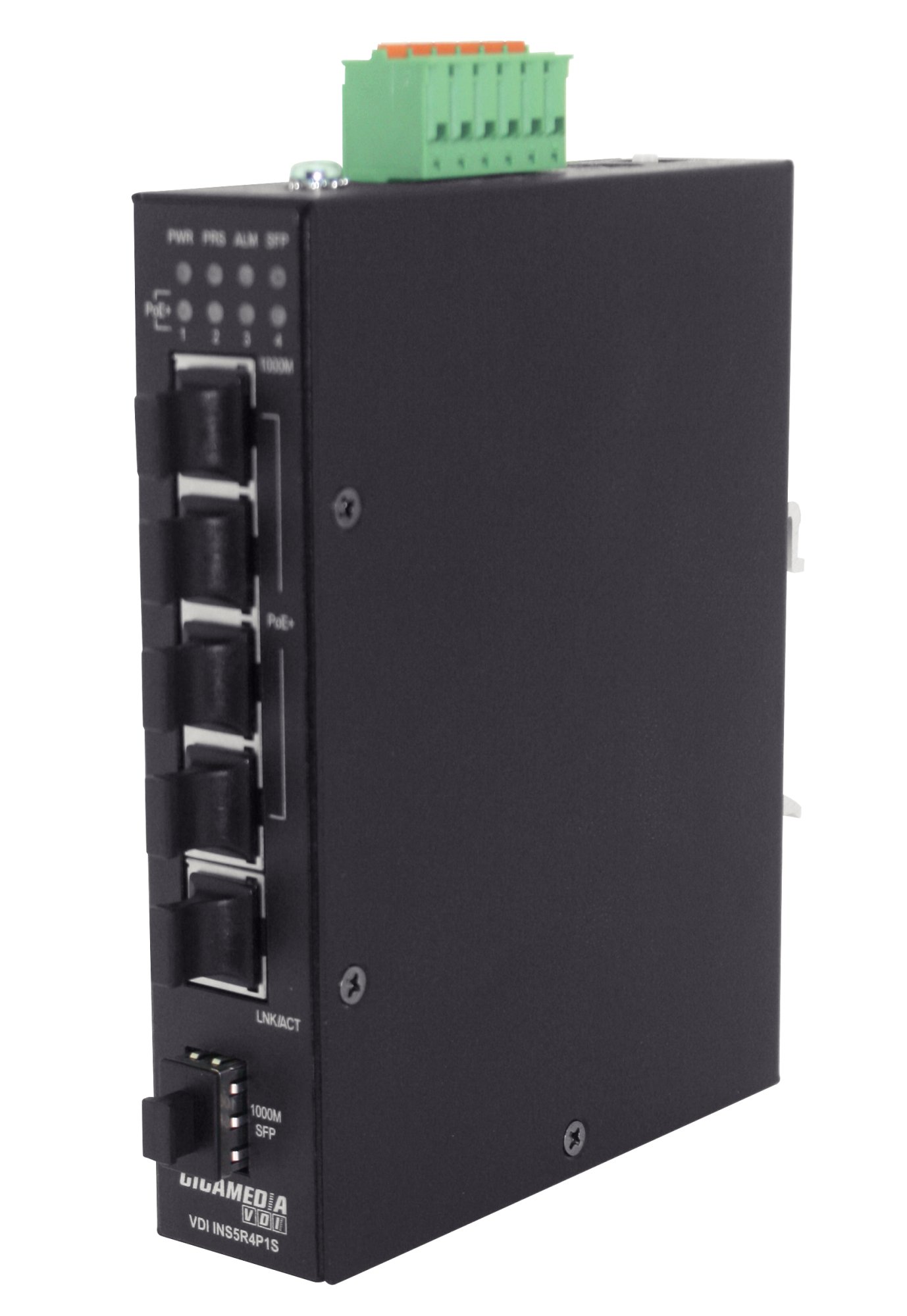 The GGM INS5R4P1S is a non-manageable PoE+ switch with 5 Gigabit ports, including 4 PoE+ ports (120 W), plus 1 SFP port designed for simple surveillance and Wi-Fi applications. This PoE+ switch reduces costs by eliminating the need for multiple power outlets to power each device on the network (PD) at distances of up to 100 meters. All Power Sourcing Equipment (PSE) and LAN ports use auto-negotiation technology to discover compatible devices. The GGM INS5R4P1S is built with industrial-grade components to protect it from hazards such as vibration, shock, freefall, interference and dust, making it resistant to harsh industrial environments.…