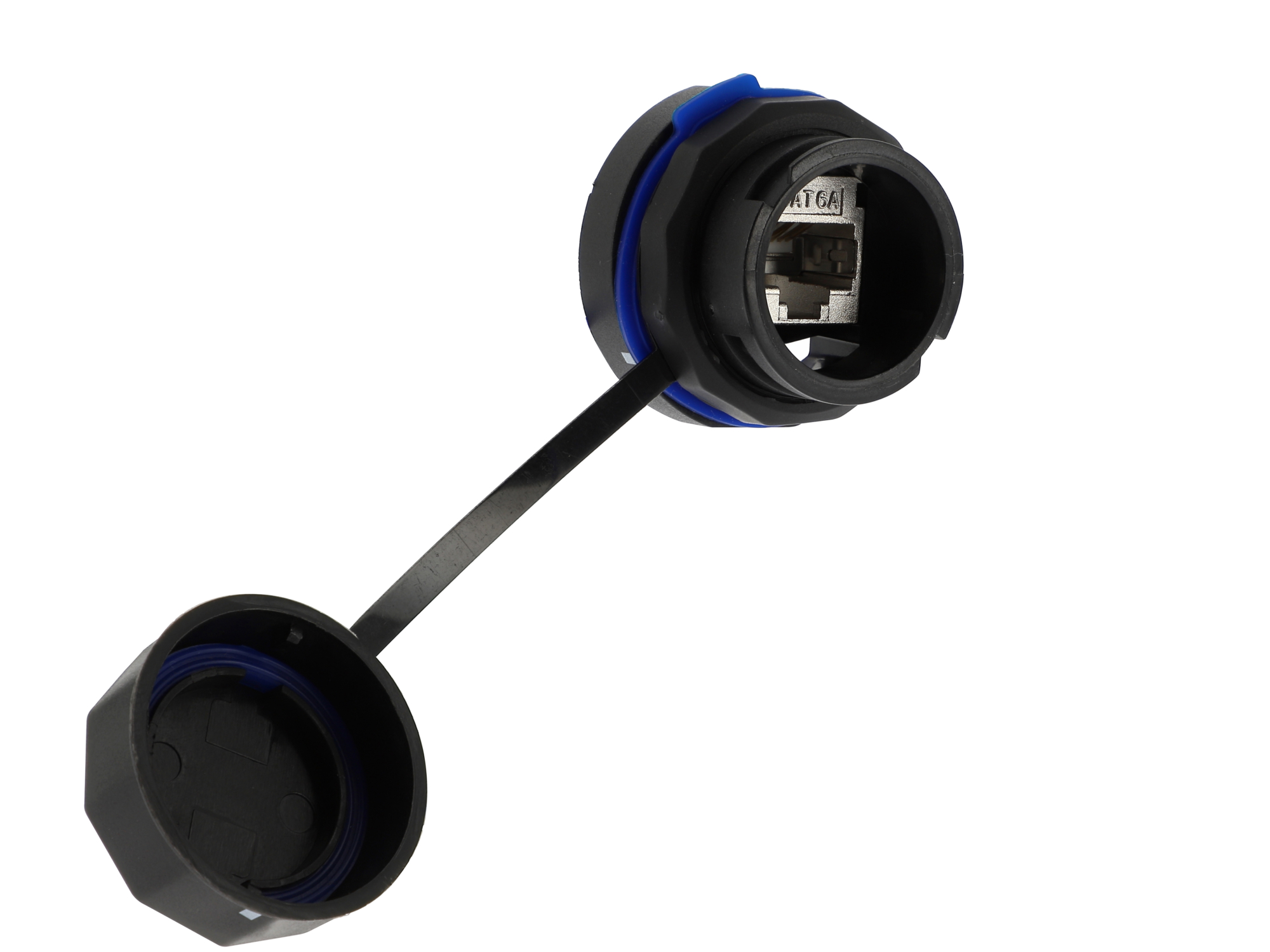 Shielded RJ45 couplers allow the connection of male RJ45 connectors in straight wiring. IP68 version with perfect sealing with included cap for protection against environmental influences.