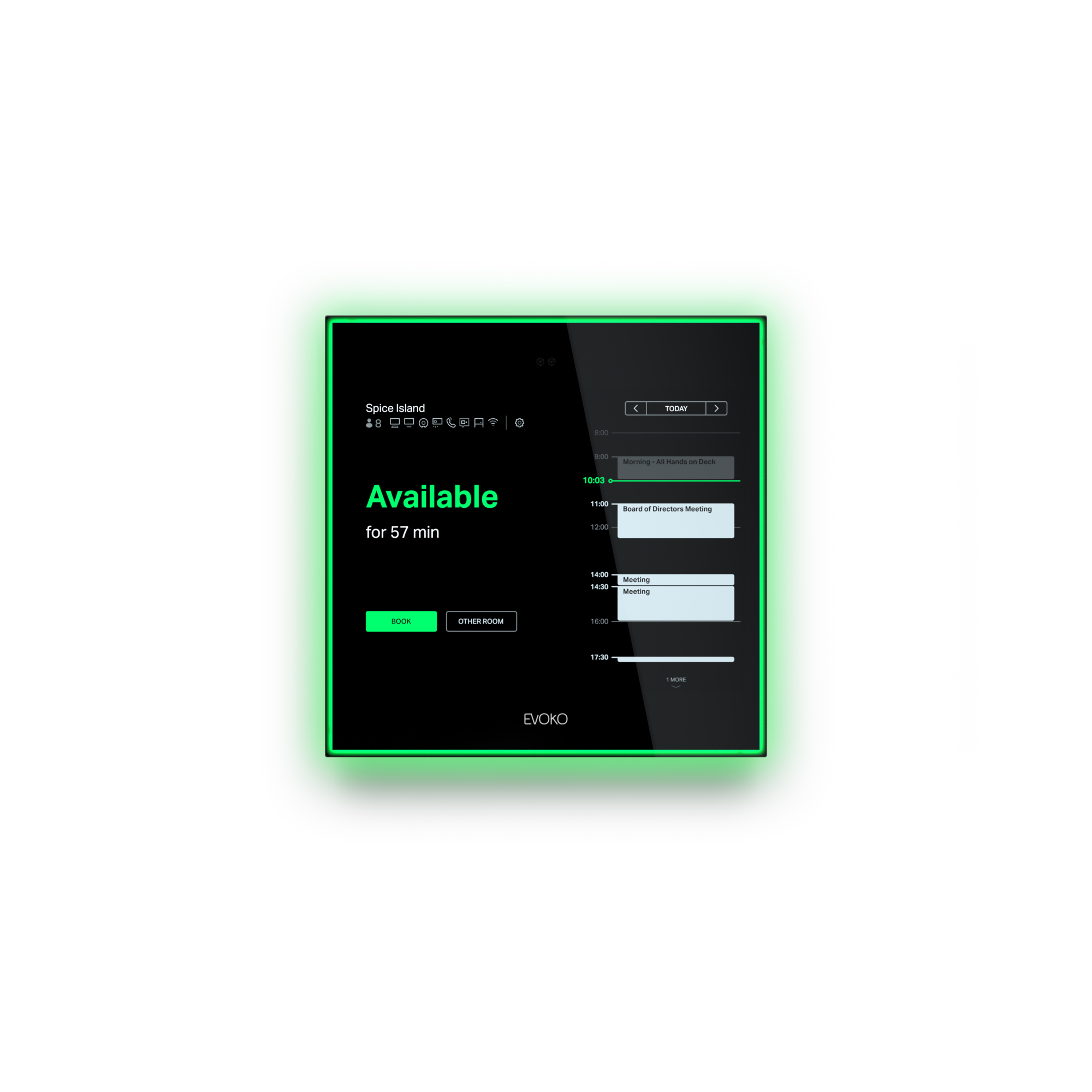 Makes it easy to find and book a free space to have a meeting. Place it outside any collaboration space to get rid of double bookings, confusion and interrupted meetings.