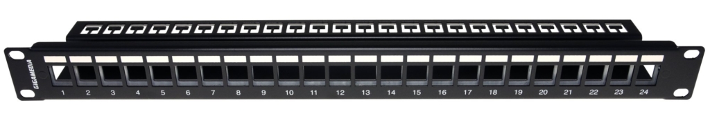 From a completely modular design or not, the GIGAMEDIA range of panels offers an economic solution and competitive cost/port ratio. It has possibility for markings and identification. Ready to accept a substantial number of active links, they are robust, have a rear support plate and thus guarantee reliability when mounted in a 19″ environment. NB: Delivered without connectors