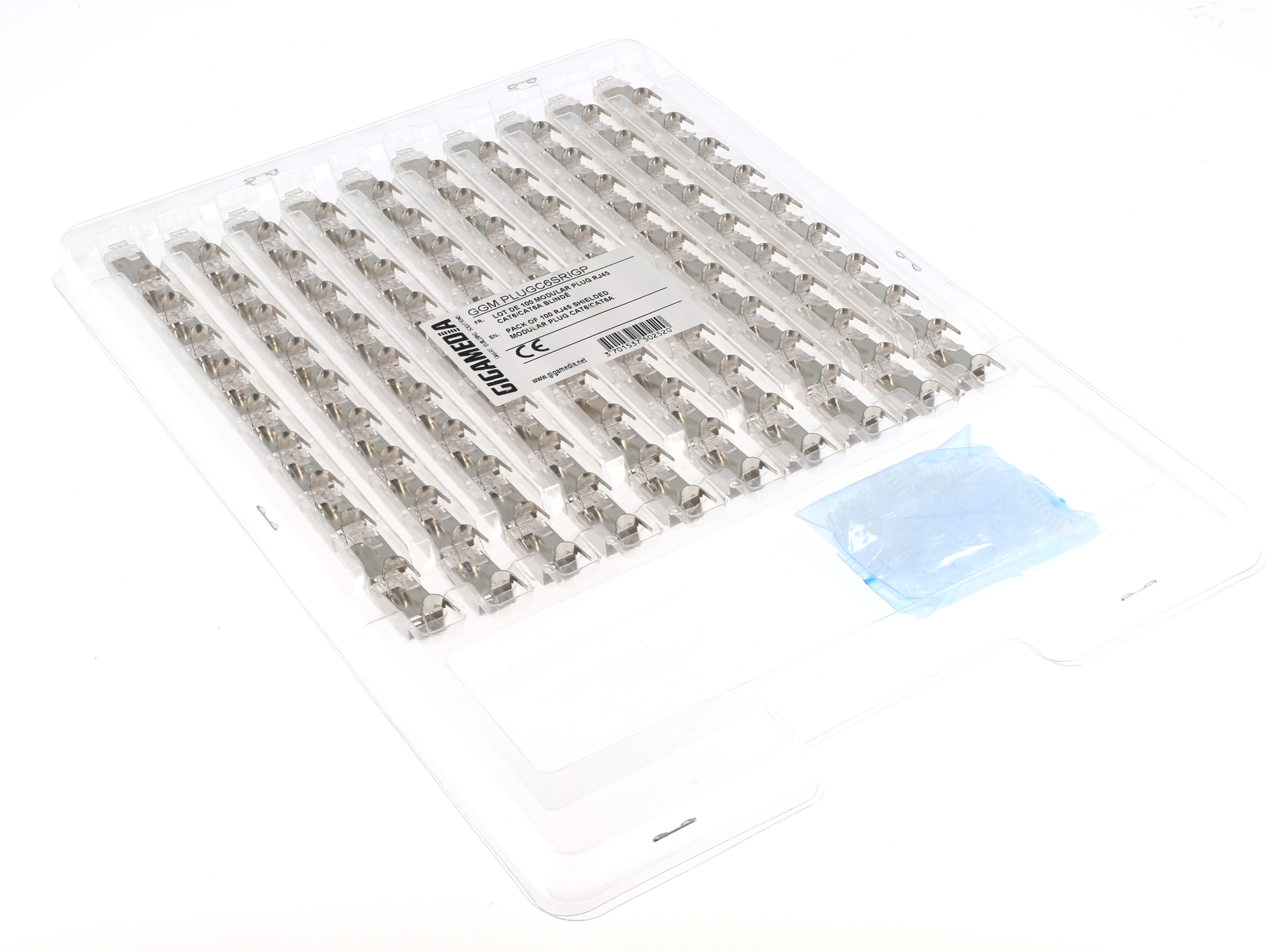 Shielded plugs 2 parts, with rear cable clamp optimizing cable holding. Suitable for high frequency applications up to 10Gbps. Colour sleeves (cable Ø 8 mm) included.