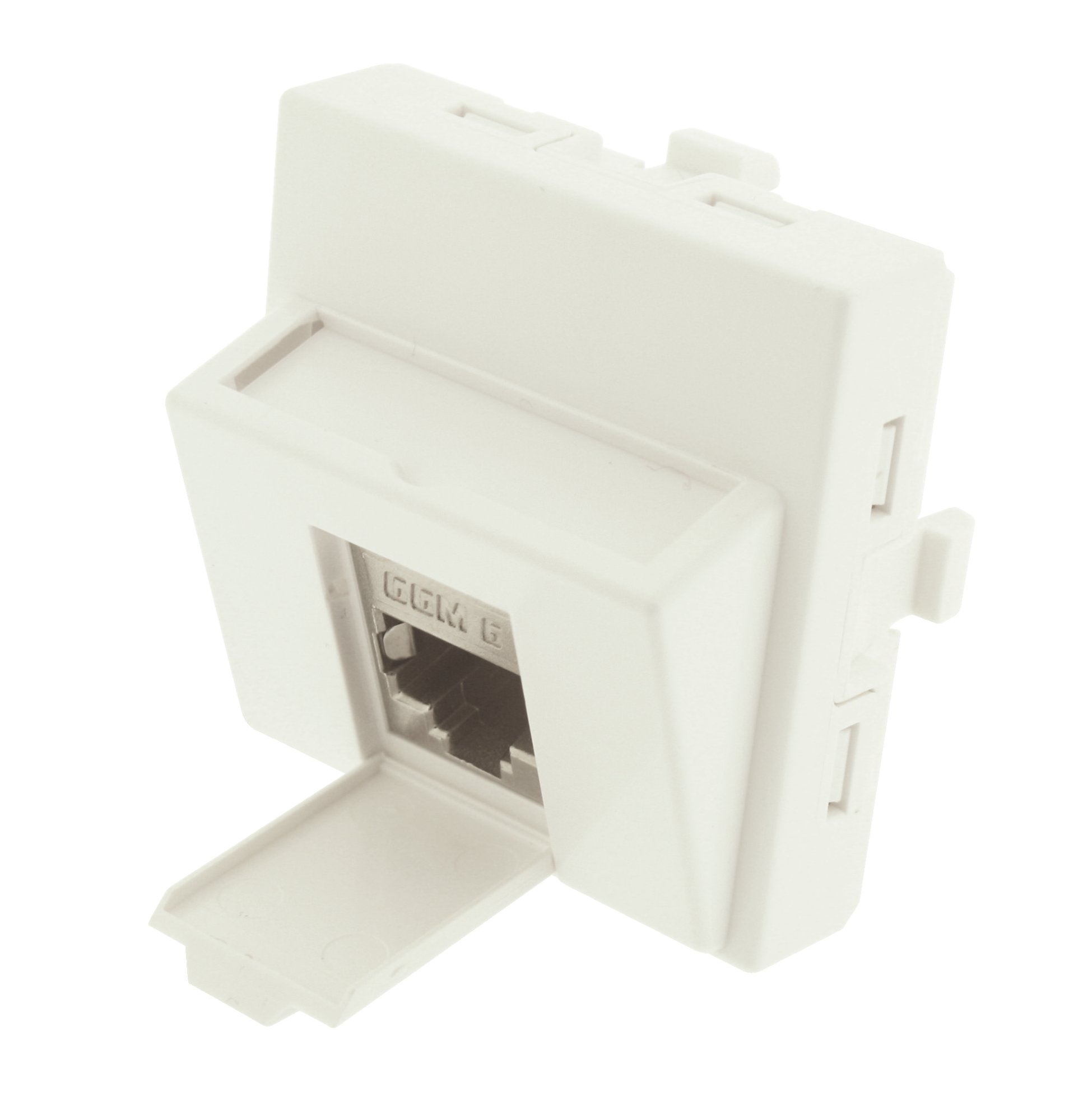 The GIGAMEDIA category 6 is an RJ45 Keystone jack requiring no specific tools allowing rapid and simple implementation. In this version it is delivered with a white inclined 45*45 faceplate. This connector offers performances better than Category 6 / Class E corresponding to standards ISO 11801 and the EIA/TIA on NEXT, ACR, PSNEXT and RETURN LOSS values.