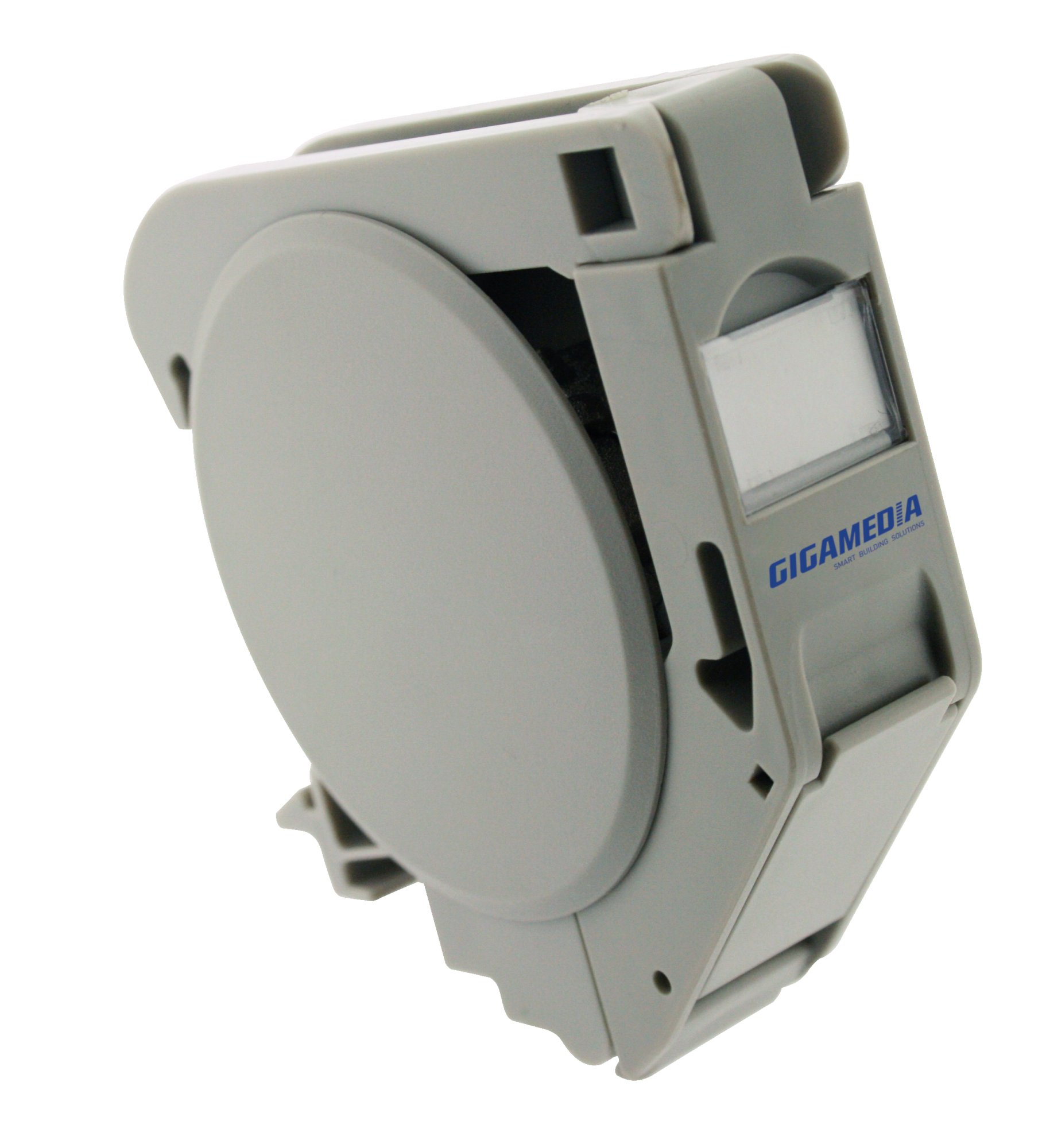 Module to be installed on DIN / OMEGA rail able to receive either a CAT5e or CAT6 jack in keystone format.