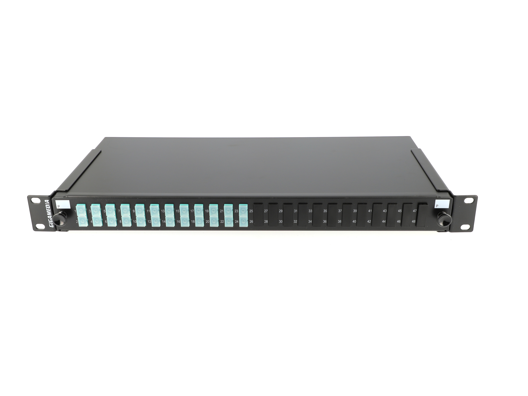 Sliding patch panel equipped with 12 SC duplex multimode connectors + 24 SC OM3 pigtails