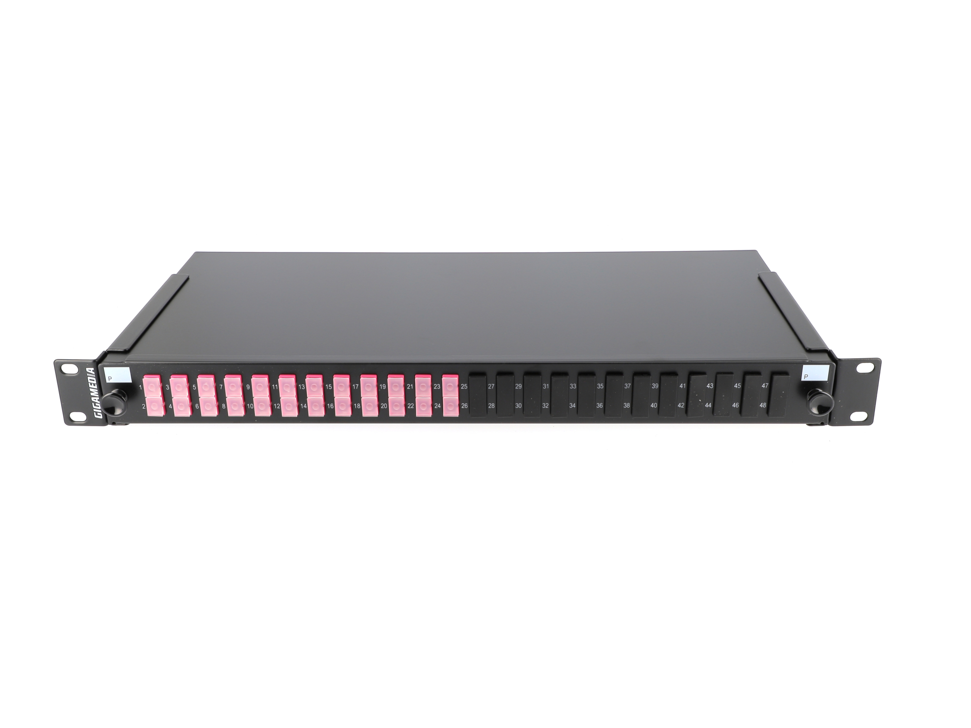 Sliding optical drawer OM4 equipped with 12 SC duplex multimode connectors.