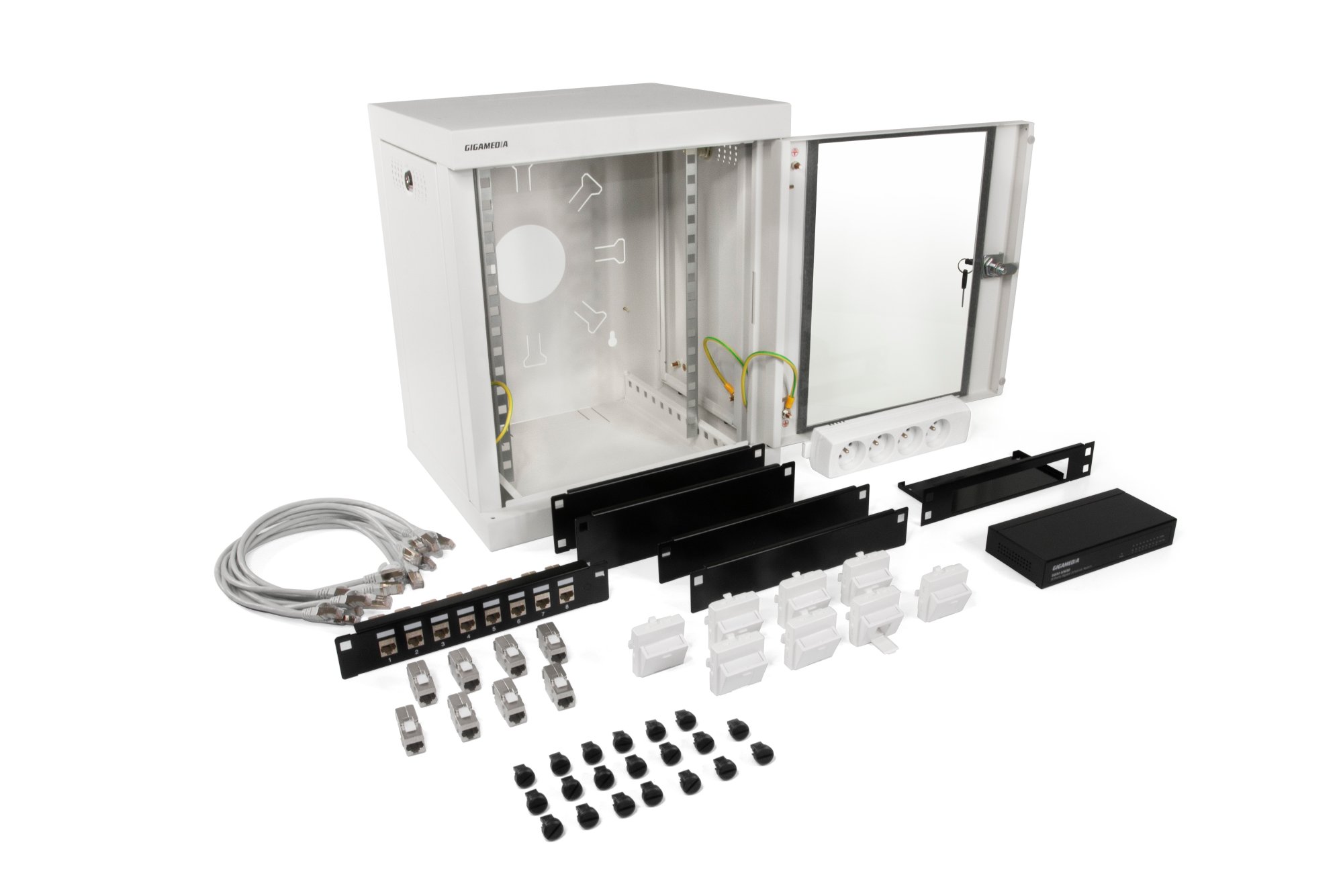Deux fois moins encombrant qu'un coffret 19″, le coffret 123 CONNECT a été spécialement conçu pour s'intégrer dans les environnements restreints. Des composants déjà packagés pour réaliser une installation de 8 postes (hors câbles). Composition GGM 123SKA : 1 x Coffret 8 modules (GGM 123COF8B) 1 x Panneau de brassage 8 ports STP Cat 6 (GGM 123P86FGMN) 8 x Cordon de brassage S/FTP Cat6 0,5 m (GGM CAT6S05M) 8 x Noyau RJ45 STP Cat 6 (GGM PRJC6STL) 8 x Plastron incliné 45x45 1 port (GGM PL45IS) 1 x Switch 8 ports 10/100/1000 (GGM GS08 + GGM 123ADAPSWV2) 1 x Bandeau…
