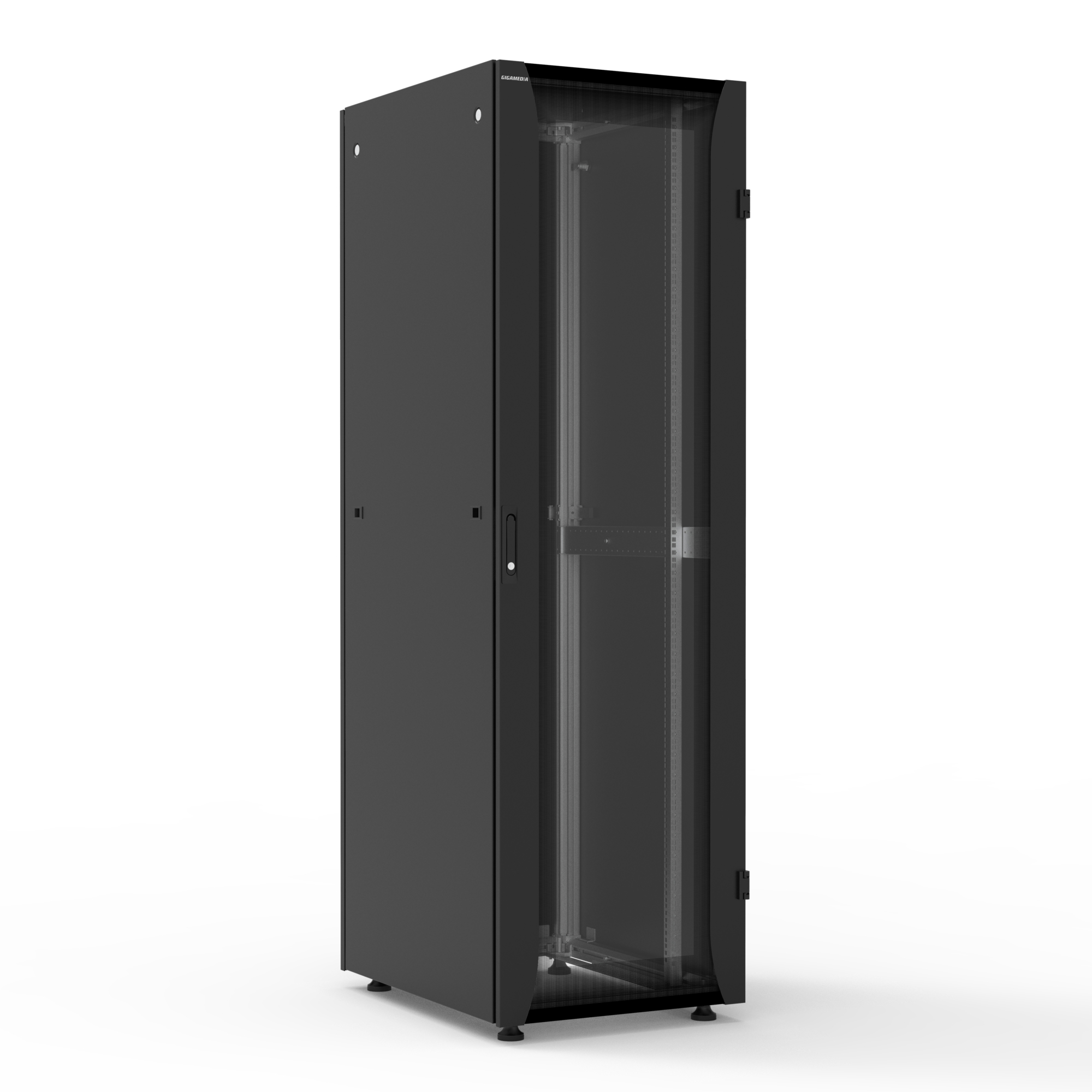 | Montants | Deux montants 19″ réglables en profondeur (acier zingué), repérage des ″U″, perforations de 9,5 x 9,5 mm |