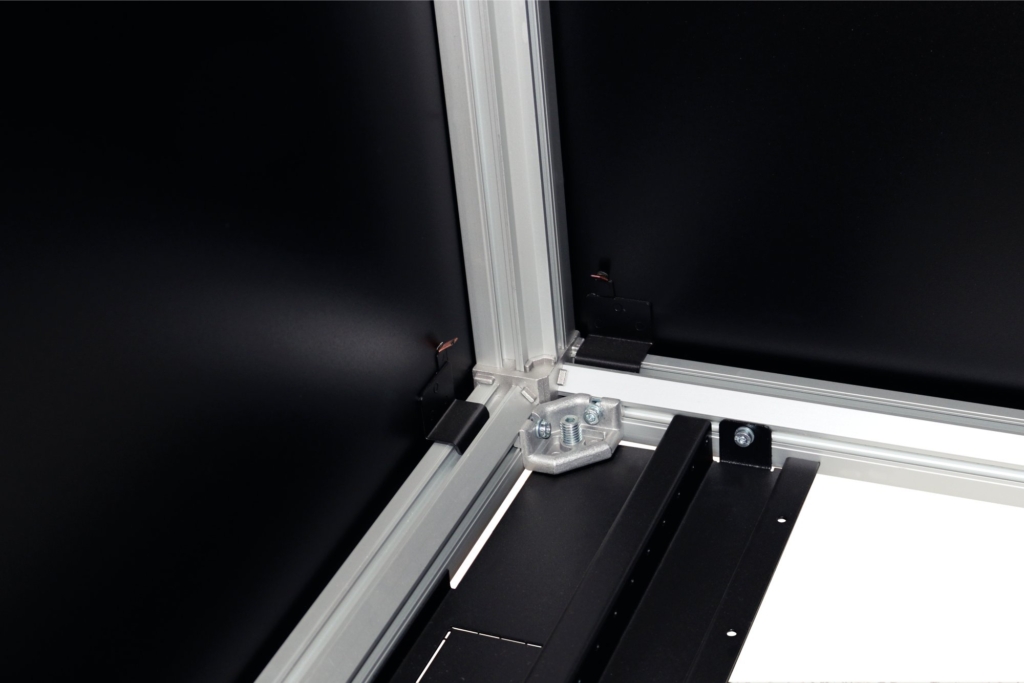 La rigidité et la charge statique du châssis en aluminium, le haut niveau d'équipement, la finition, l'esthétique ... bref, une valeur sûre !L'assemblage mécano vissé de l'ossature permet un démontage complet de la baie, très pratique en cas d'accès difficiles.