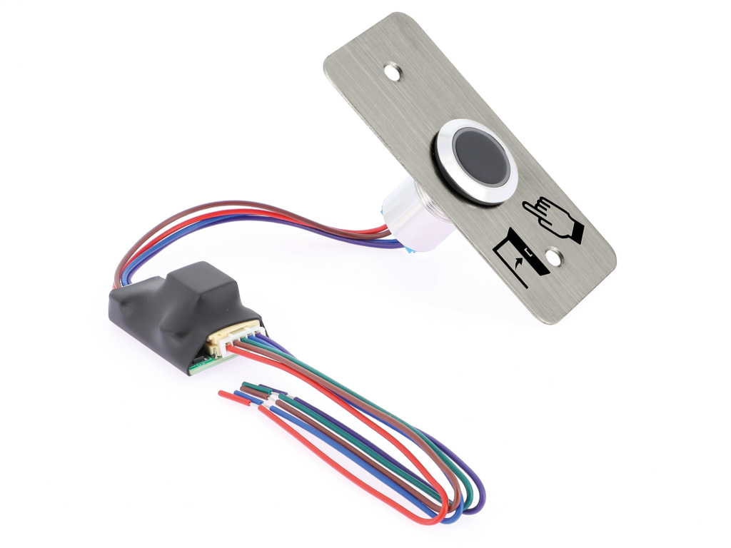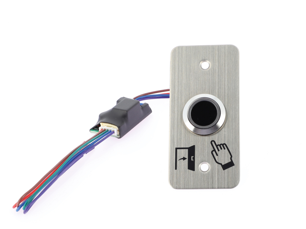 Le AXBLI19NONCE est un bouton de sortie sans contact infrarouge en acier inoxydable avec halo de couleur bleu/vert. Il s'alimente en 12~24 VDC. Il dispose de contact NO/NF avec un pouvoir de coupure max de 30 VDC /1A. Une temporisation ou un fonctionnement en mode bistable est paramètrable. Il est livré avec une contre plaque carré avec pictogramme de 39,5 x 84,5 mm Un support pour une installation en saillie est également disponible sous la référence GGM AXBBACKE. Ce bouton de sortie dispose d'une protection IP65 en façade.