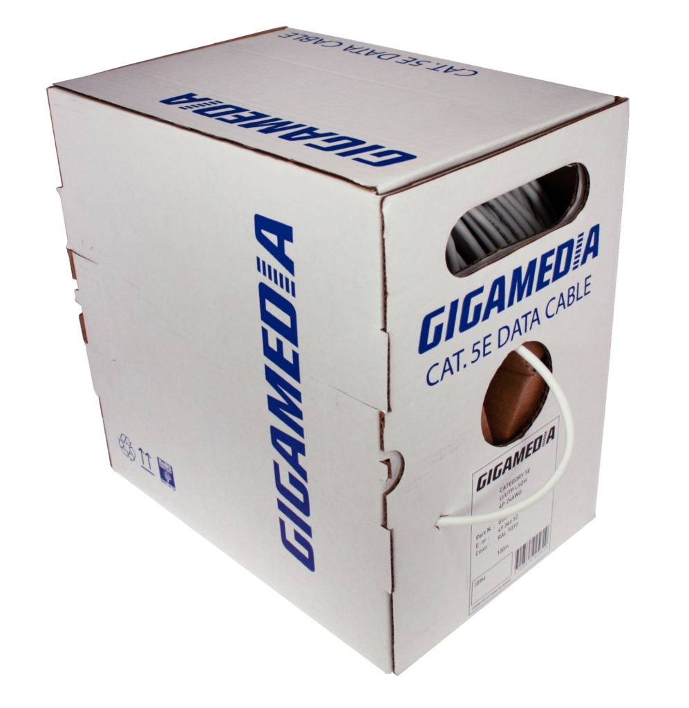 Les câbles GIGAMEDIA CAT5e sont des câbles de performances supérieures aux exigences des standards tels que EIA/TIA, ISO, EN, ... Ces câbles sont destinés aux réseaux locaux informatiques pour des liaisons capillaires. Ces câbles permettent l'utilisation des protocoles supportés par la classe D et jusqu'au Gigabit Ethernet. Ils sont utilisés dans la transmission de signaux numériques et analogiques pour la voix, la transmission de données et des liaisons vidéos.