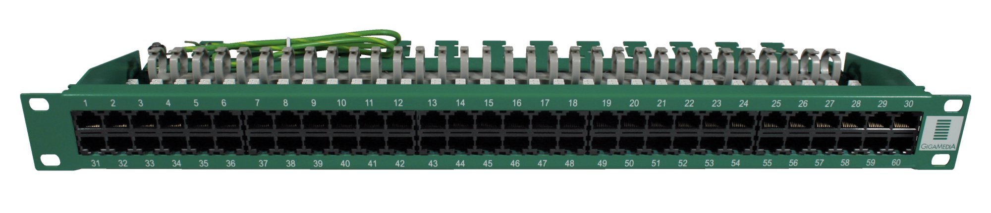 Les rocades de distribution verticale pour la téléphonie ne nécessitent pas l'utilisation d'interfaces de raccordement de performance Catégorie 6 ou Catégorie 5e. Des panneaux haute densité Catégorie 3 conviennent idéalement à ce type d'utilisation. Disposer de 60 ports sur une hauteur utile de 1U permet un câblage haute densité et des gains d'espace au niveau de l'armoire de brassage. L'offre GIGAMEDIA est constituée de deux références correspondant à deux conventions de raccordement distinctes : l'une en 3/6, 4/5 et l'autre en 4/5, 7/8 (France Télécom).