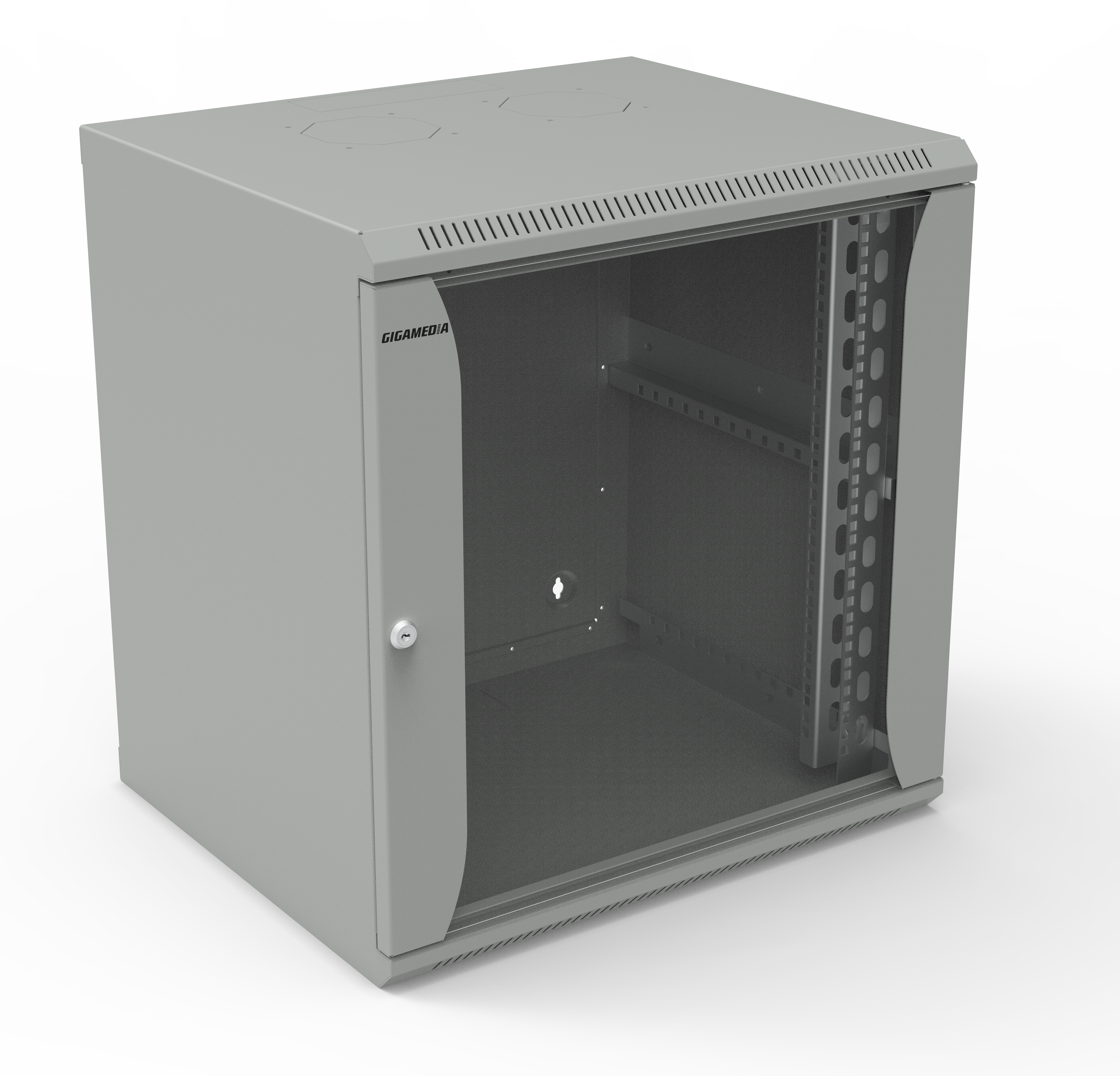 | Montants | Deux montants 19″ réglables en profondeur (acier zingué), repérage des ″U″, perforations de 9,5 x 9,5 mm |