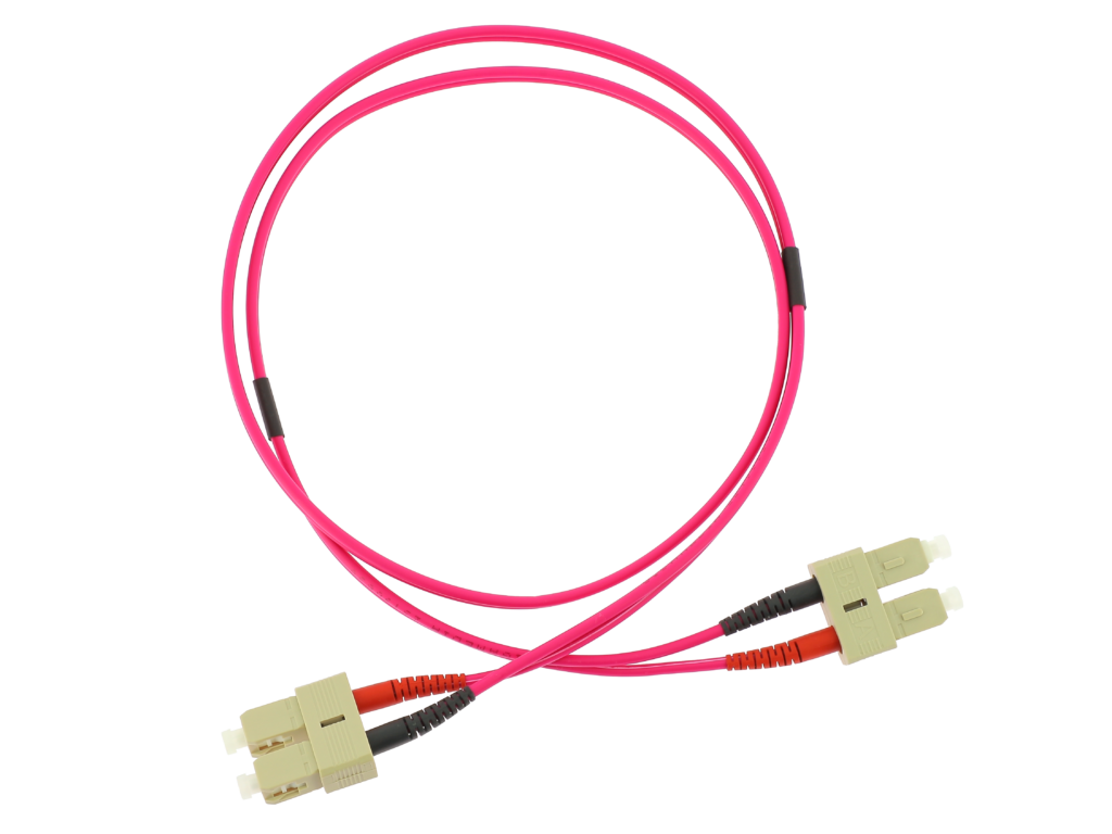 Jarretières optiques duplex OM4 50/125 µm, gaine turquoise.