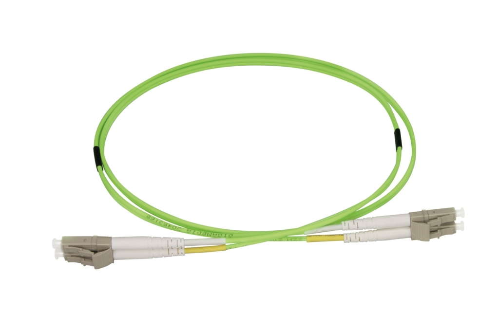 Jarretières optiques duplex OM5 50/125 µm, gaine vert citron.
