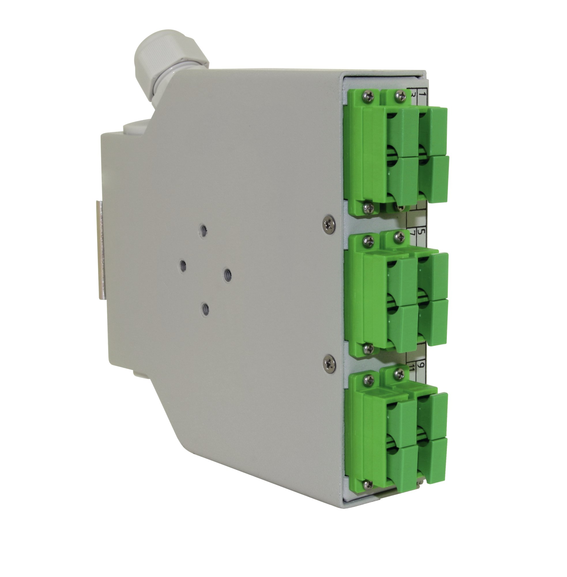 Doté d'un design compact et facile à installer, le boîtier GIGAMEDIA DINFO permet de connecter jusqu'à 12 fibres. Il permet également de mixer des ressources optiques et électriques à l'intérieur d'armoires industrielles.