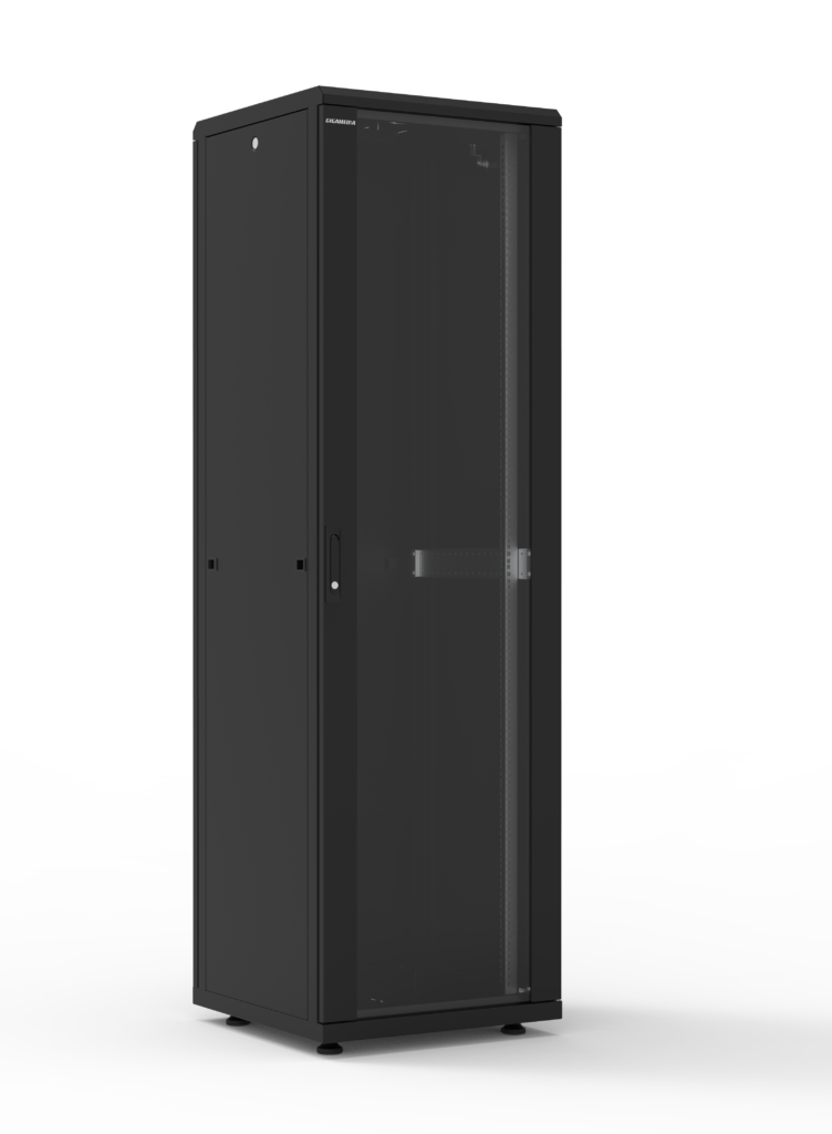 | Montants | Deux montants 19″ réglables en profondeur (acier zingué), repérage des ″U″, perforations de 9,5 x 9,5 mm |