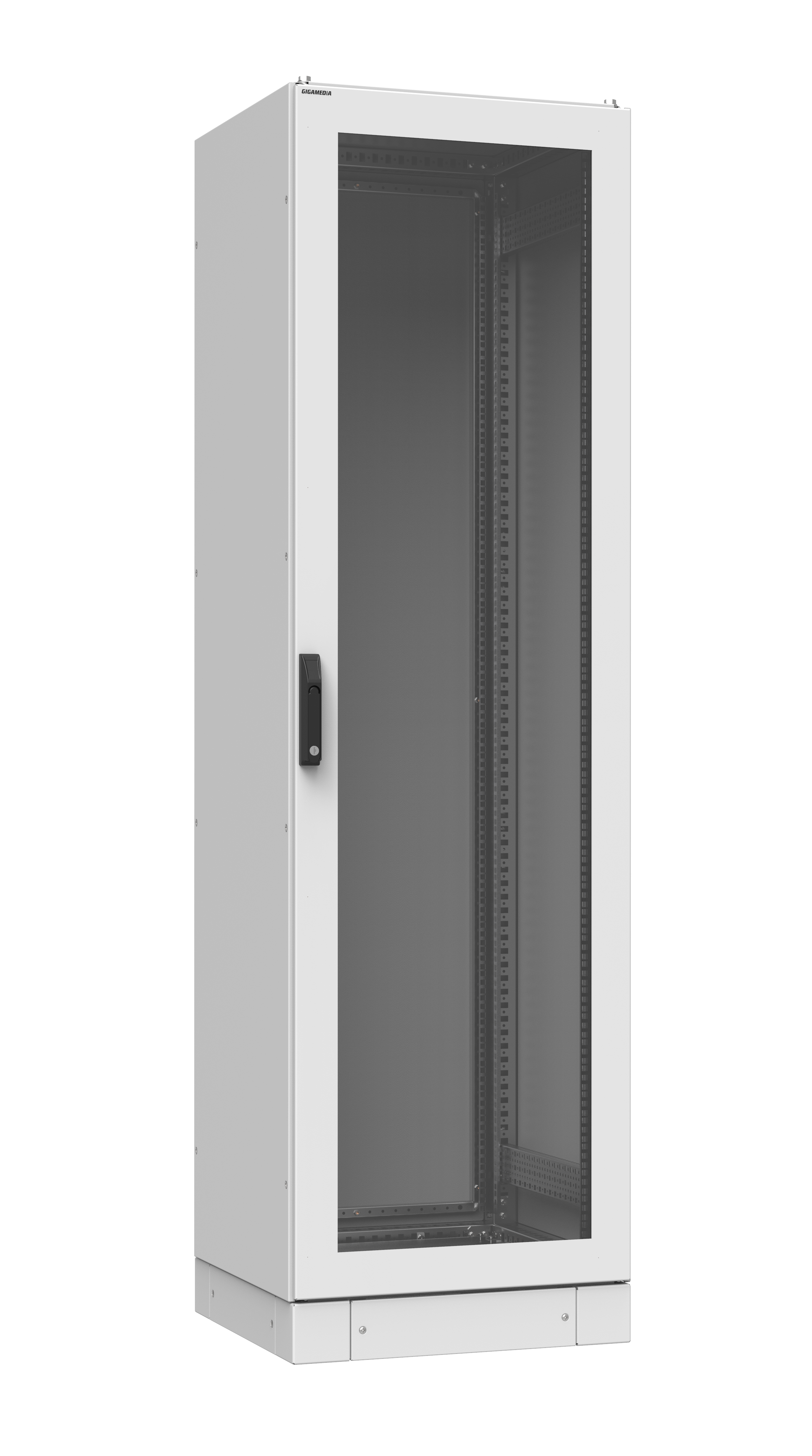 | Montants | Quatre montants 19″ réglables en profondeur (Acier zingué), repérage des ″U″, perforations de 9,5 x 9,5 mm) |