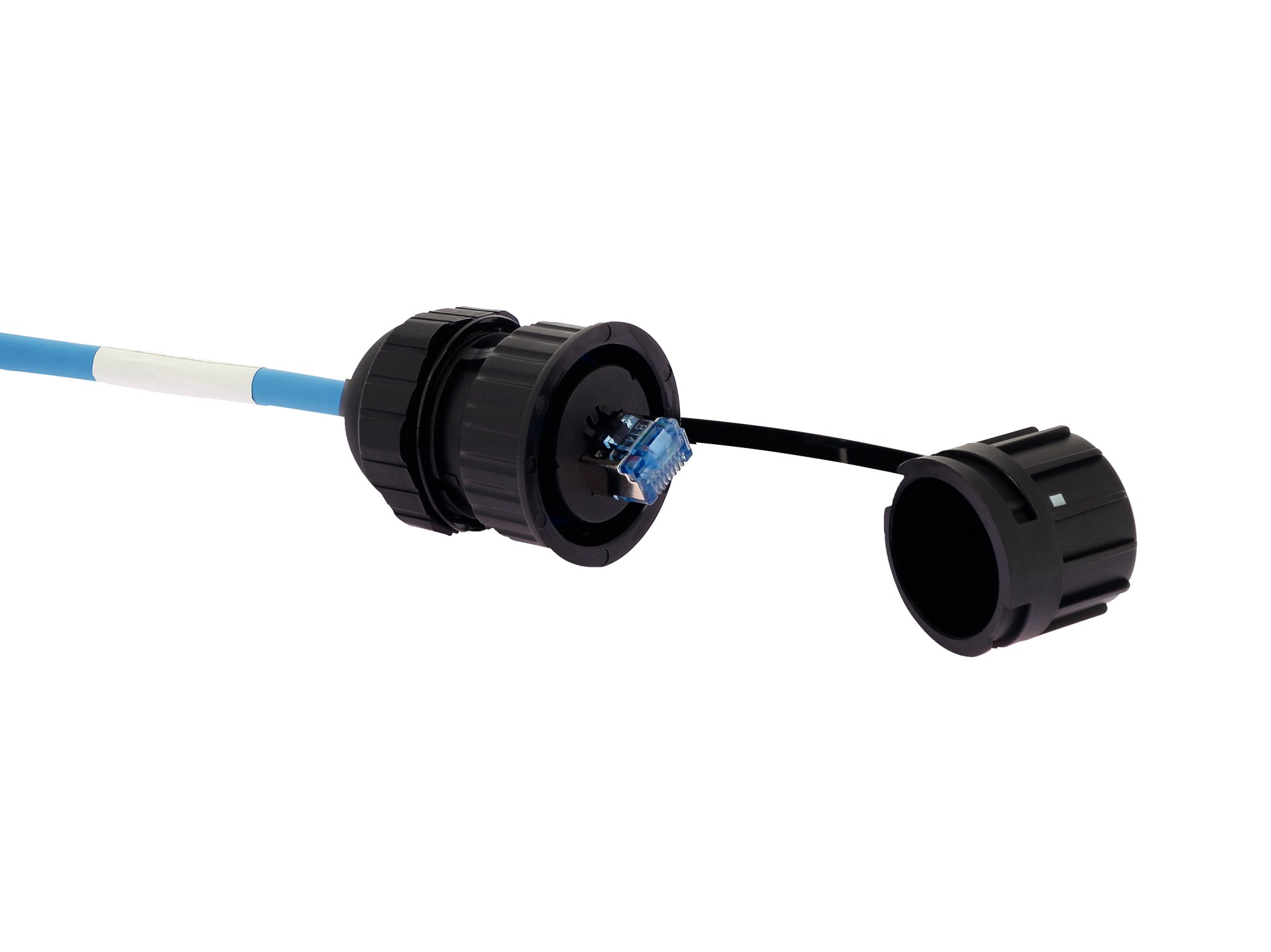 | Description longue | Adaptateur noir exterieur IP68 IEC 60529 pour cordon RJ45 8P8C avec bouchon verrouillage par 1/4 de tour, 45mm de profondeur |