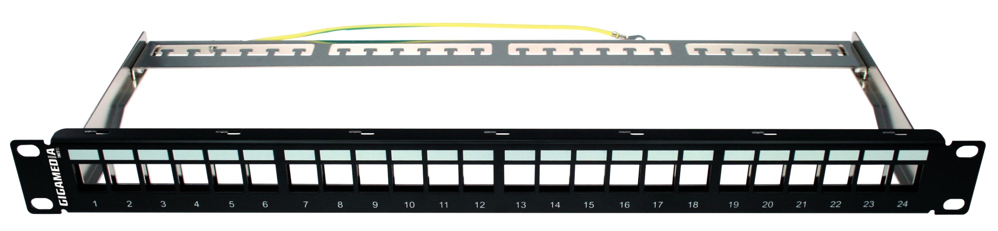 Barre de maintien arrière des câbles, Kit de reprise de masse inclus De conception totalement modulaire ou non, les panneaux de la gamme GIGAMEDIA constituent une solution économique et offrent un ratio coût par port très compétitif. Ils disposent de possibilités de repérage et d'identification. Prêt à accueillir une quantité importante de liaisons actives, ils sont robustes, disposent d'un plateau de maintien arriéré et permettent ainsi de garantir une fiabilité lors du montage dans un environnement 19″