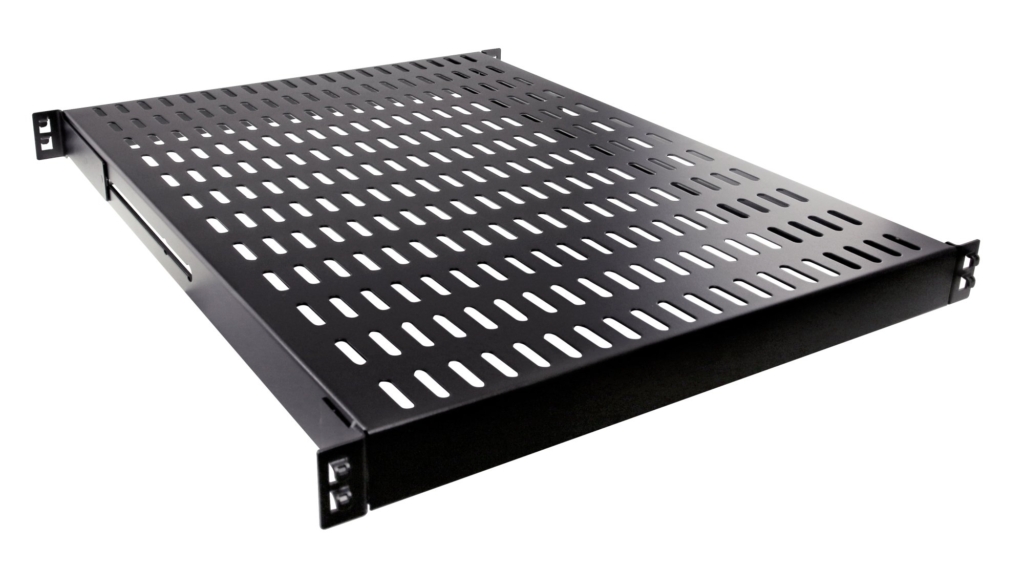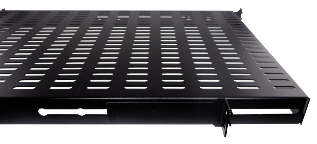 Permet l'intégration des équipements lourds non rackables.Conçue pour se fixer simplement et rapidement grâce à un système d'ergots, nous avons développé ce nouveau système de fixation dans le but de faciliter l'installation et de réduire le temps de montage.Plus besoin d'écrous cages, ni de vis, les ergots présents aux 4 coins des étagères viennent se positionner directement en un simple clic dans les perforations des montants 19″.