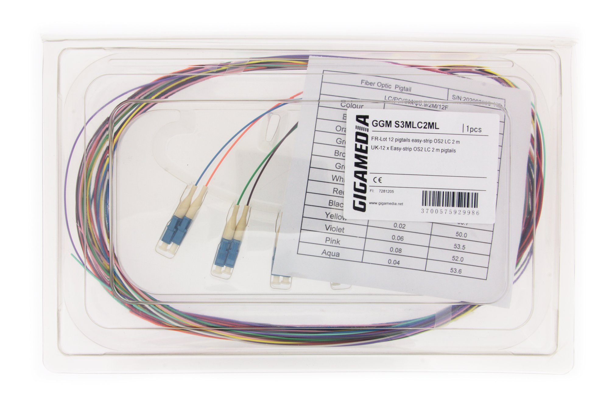 Lot de 12 pigtails LC OS2 9/125 µm, code couleur IEC 60304.